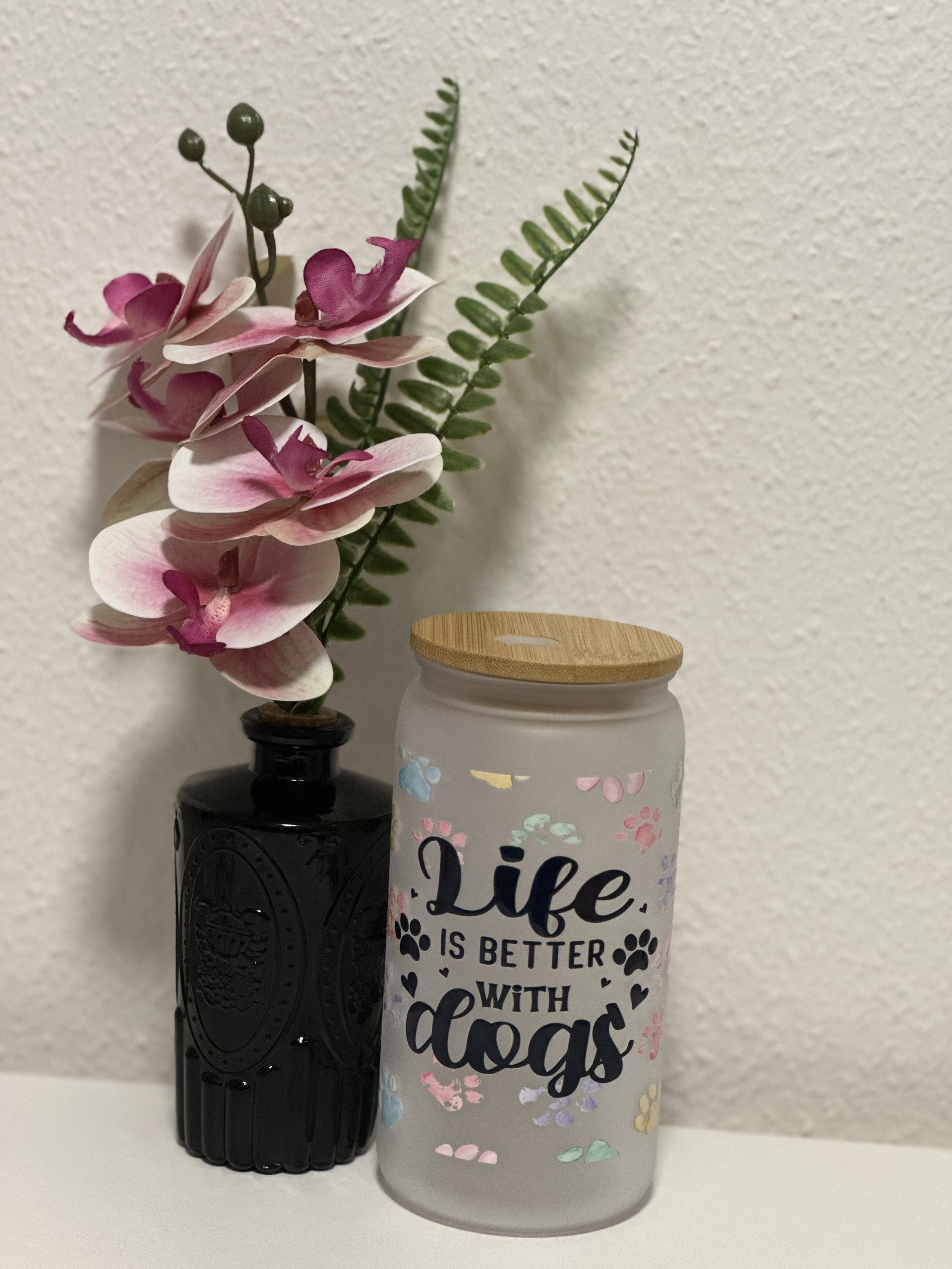 Trinkbecher mit Bambusdeckel "Life is Better with Dogs"